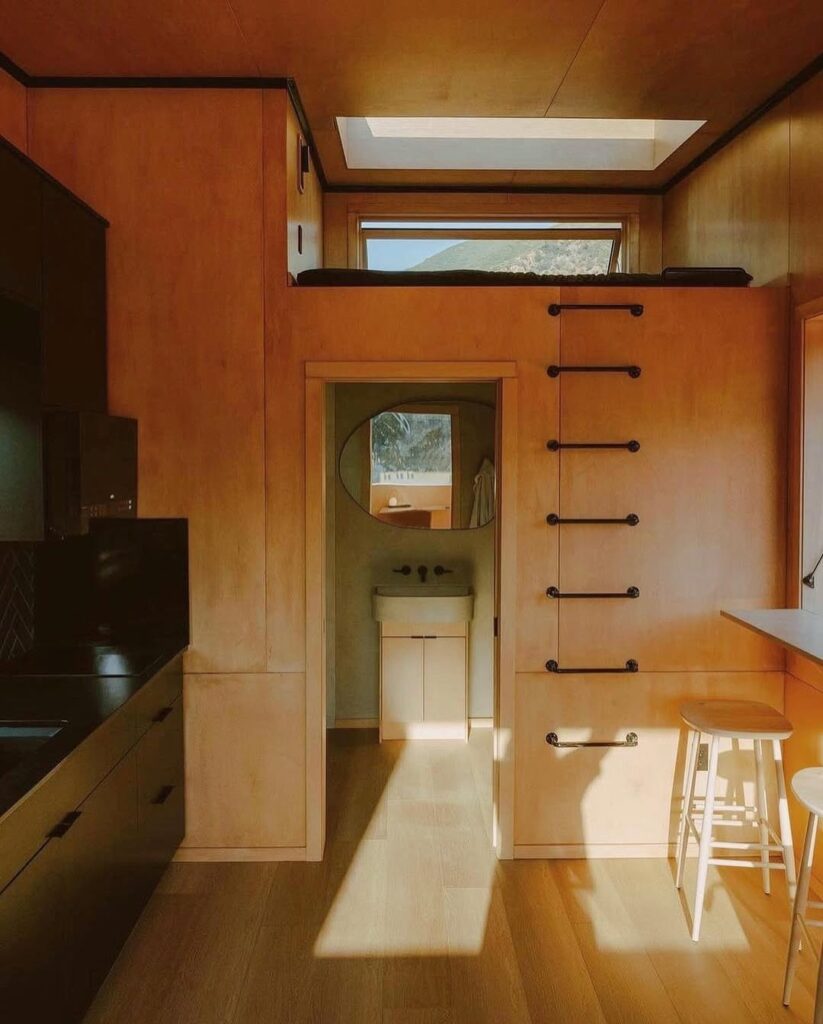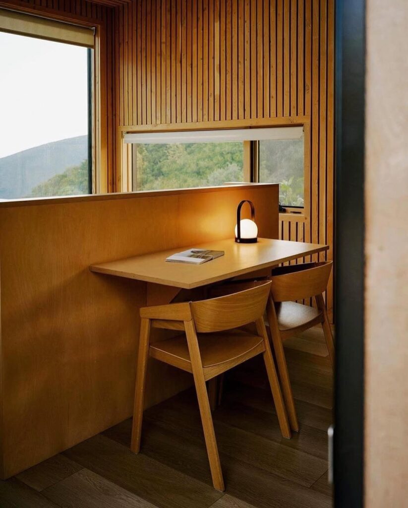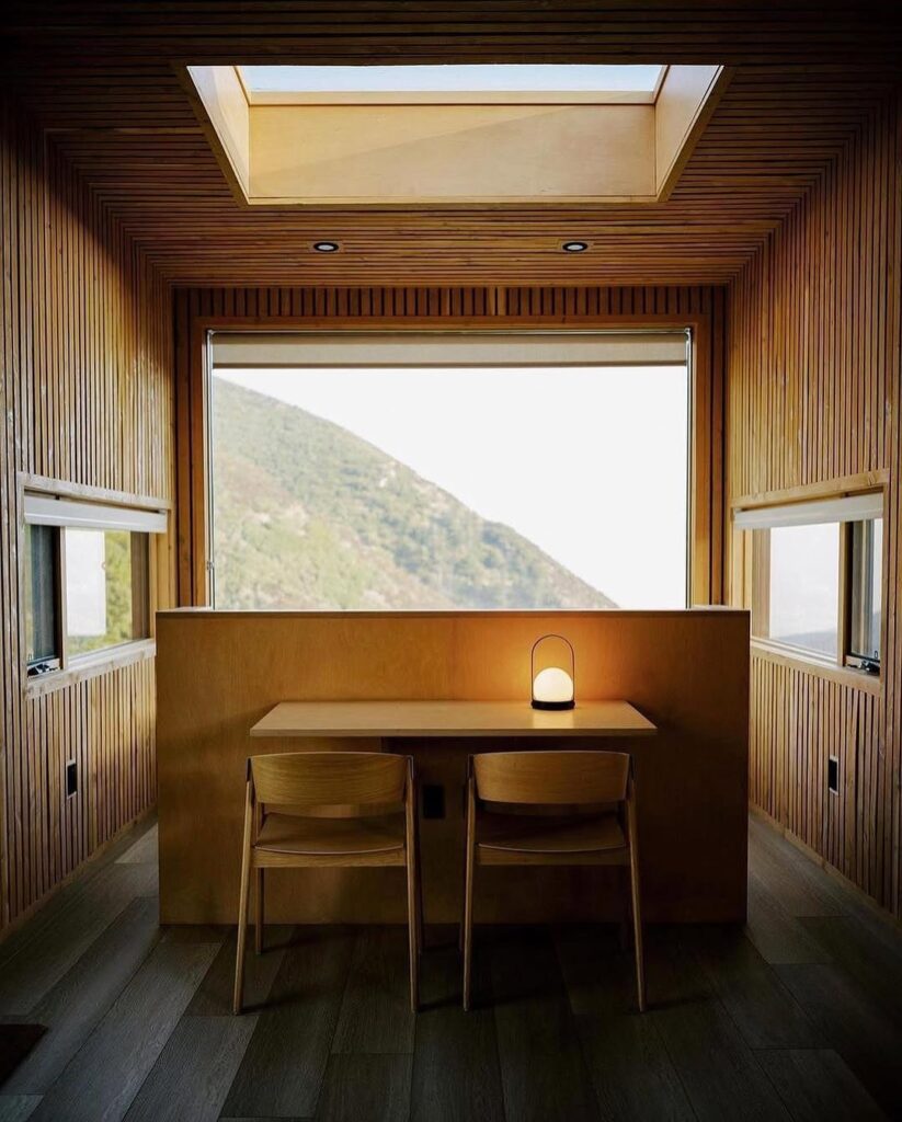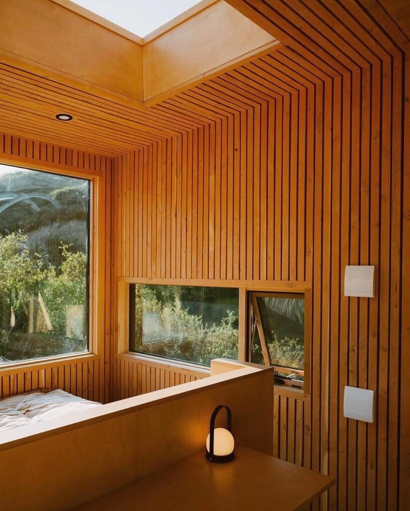 Despite its compact footprint, the cabin’s thoughtful design suggests a comfortable and well-organized interior. The slightly elevated structure allows it to overlook the surrounding greenery without disturbing the natural flow of the land. It balances modern comfort with respect for nature.