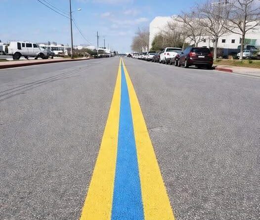 A new type of road marking has begun appearing in some parts of the United States—a thin blue line painted